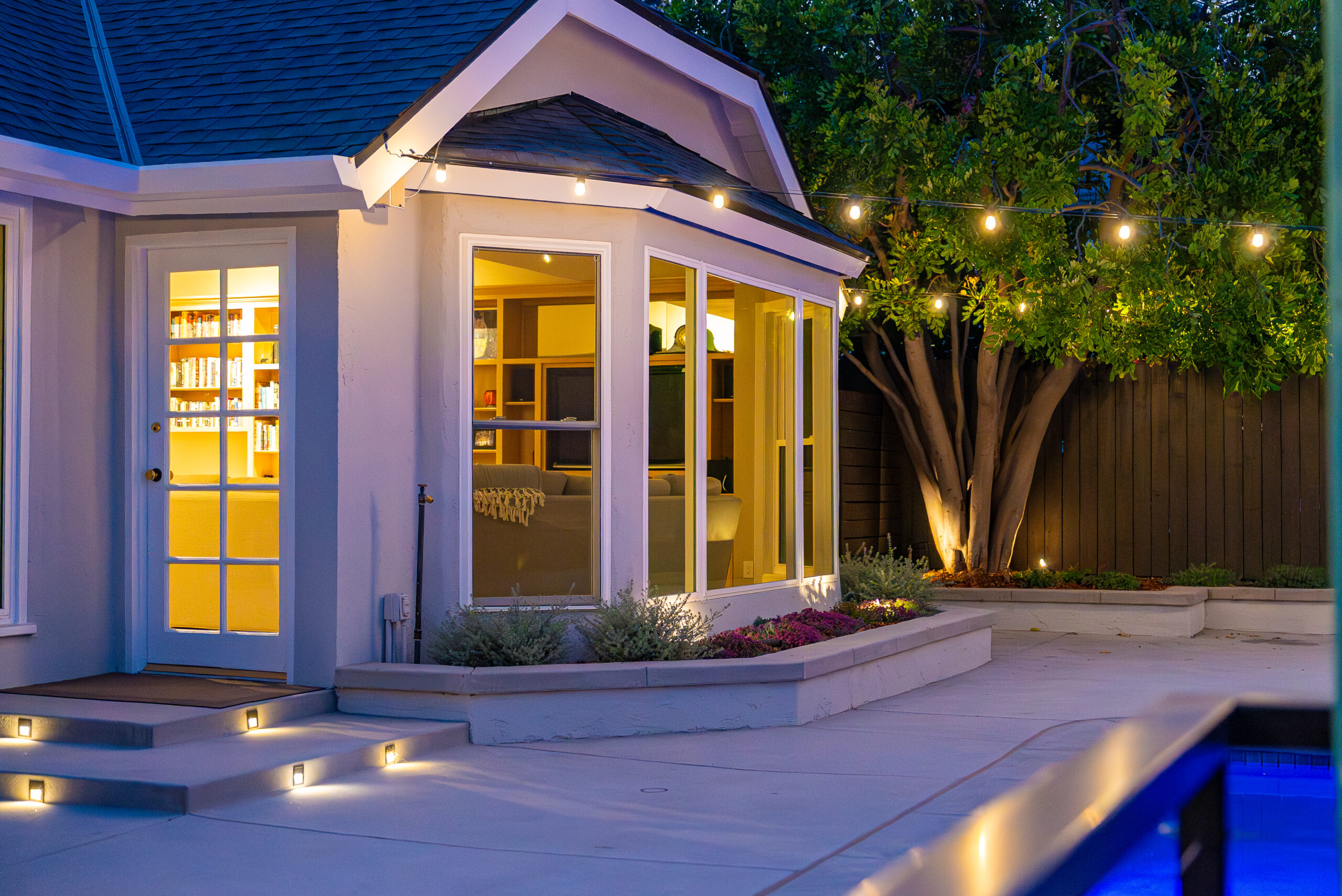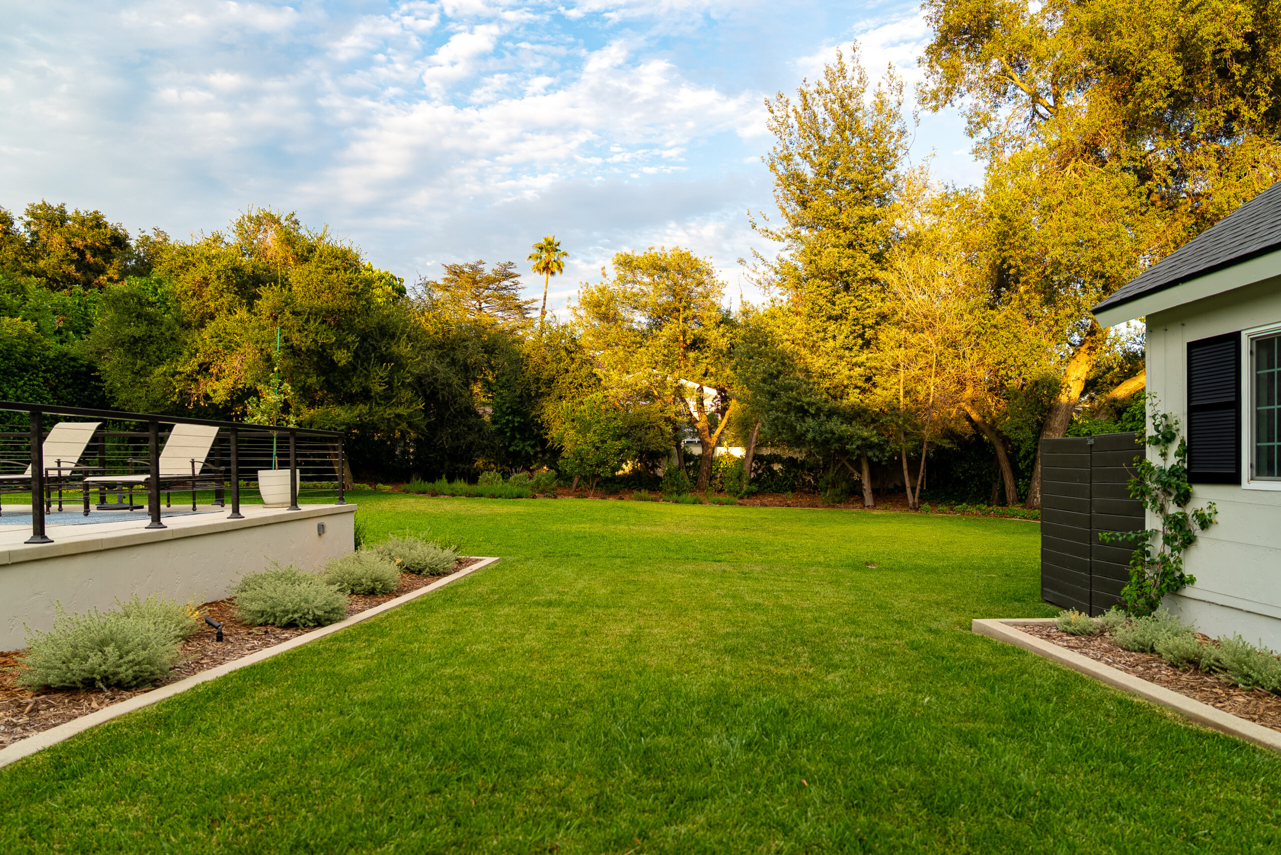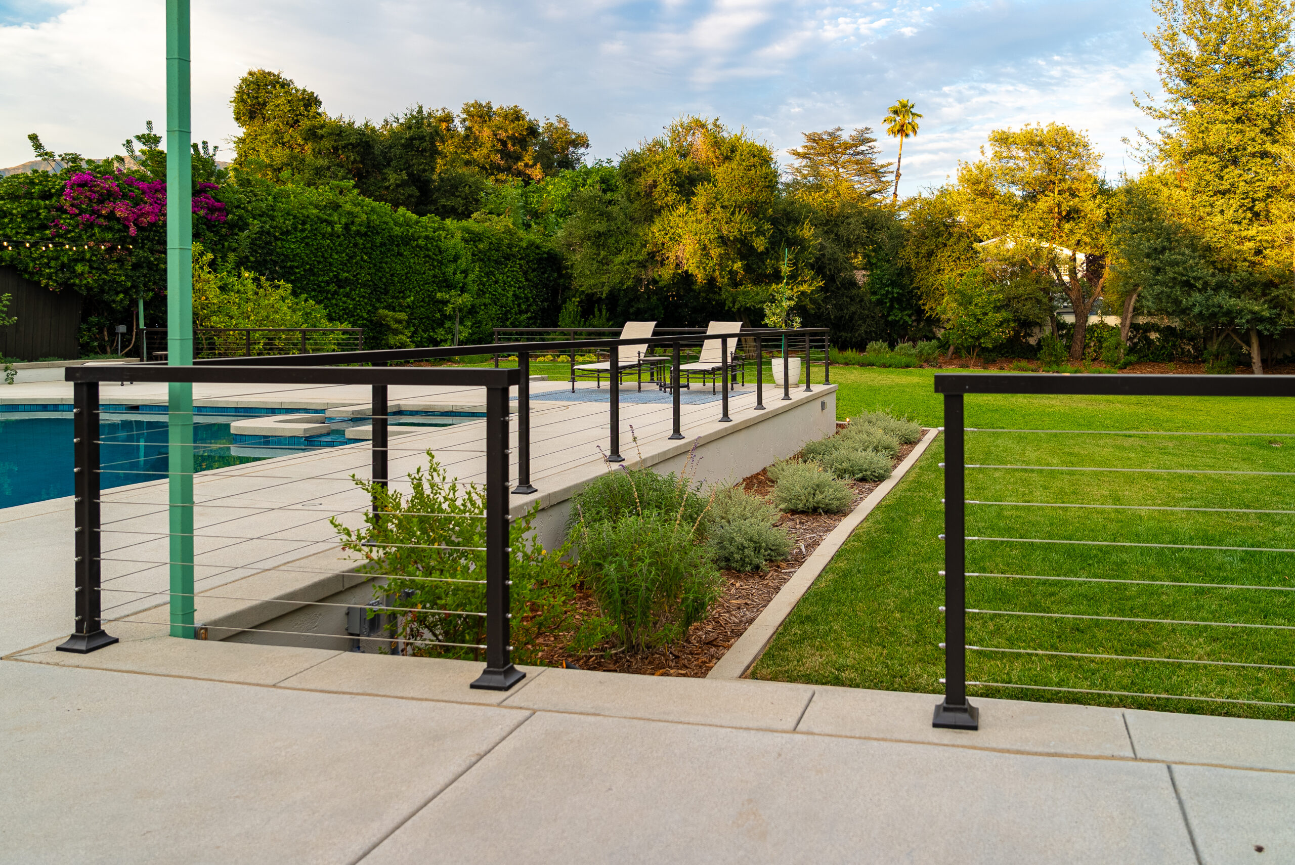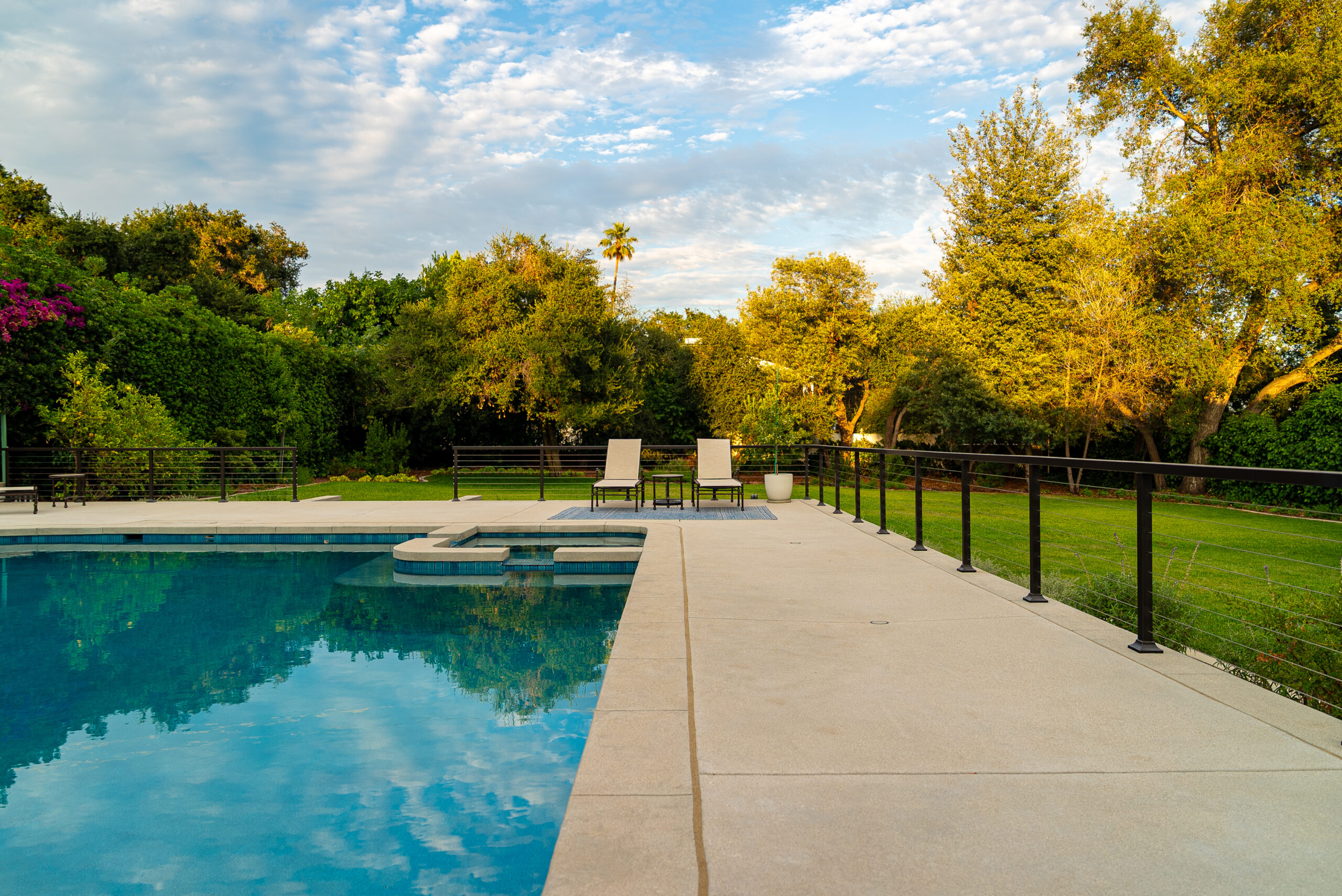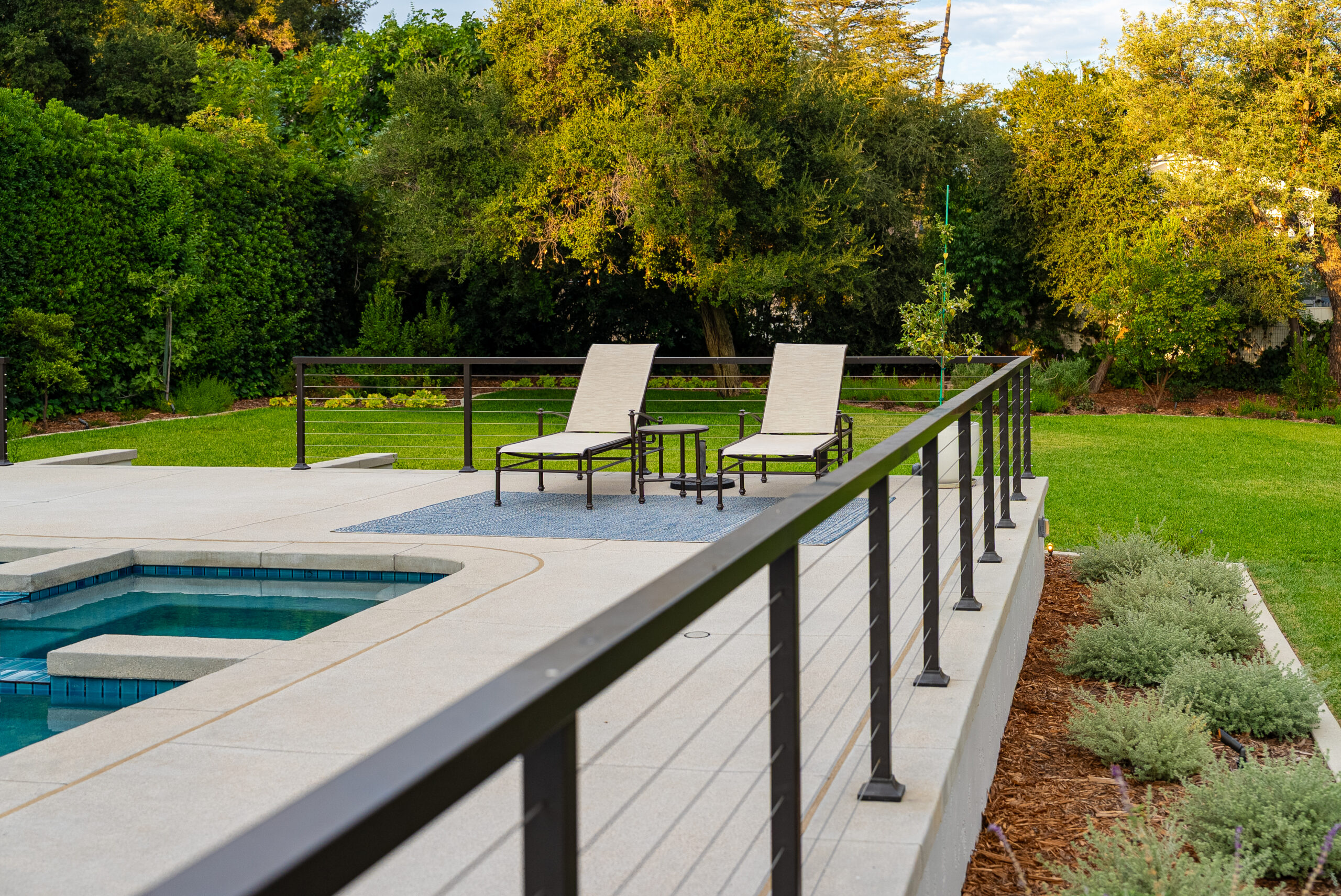 A modern pool remodel sets the stage for this backyard upgrade, complemented by a custom outdoor BBQ featuring a Dekton Kreta surface for a sleek, architectural finish. Sand-finished concrete adds texture and cohesion throughout the space, while layered outdoor lighting highlights key design elements and enhances the overall atmosphere. The result is a refined outdoor environment built for durability, comfort, and visual impact.